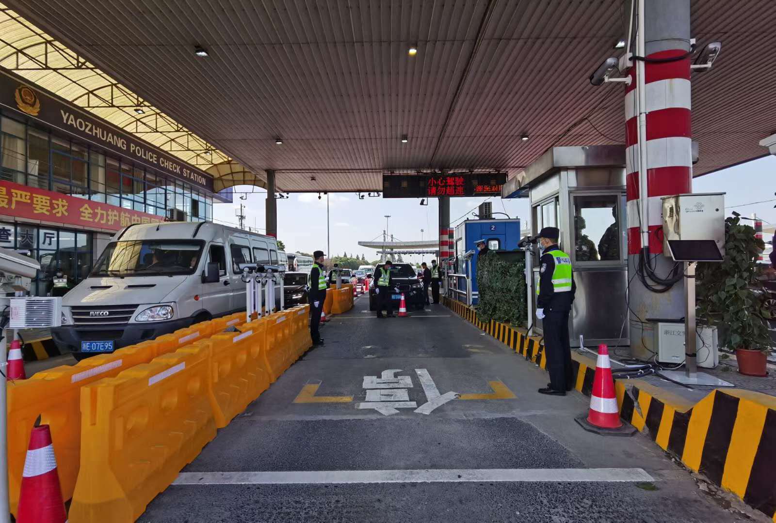 “您好,请您打开后备箱配合检查,并出示您的身份证件。”在S32申嘉湖高速省际道口临时检查站的一天里,这句话会被临时检查站安保人员重复很多次。