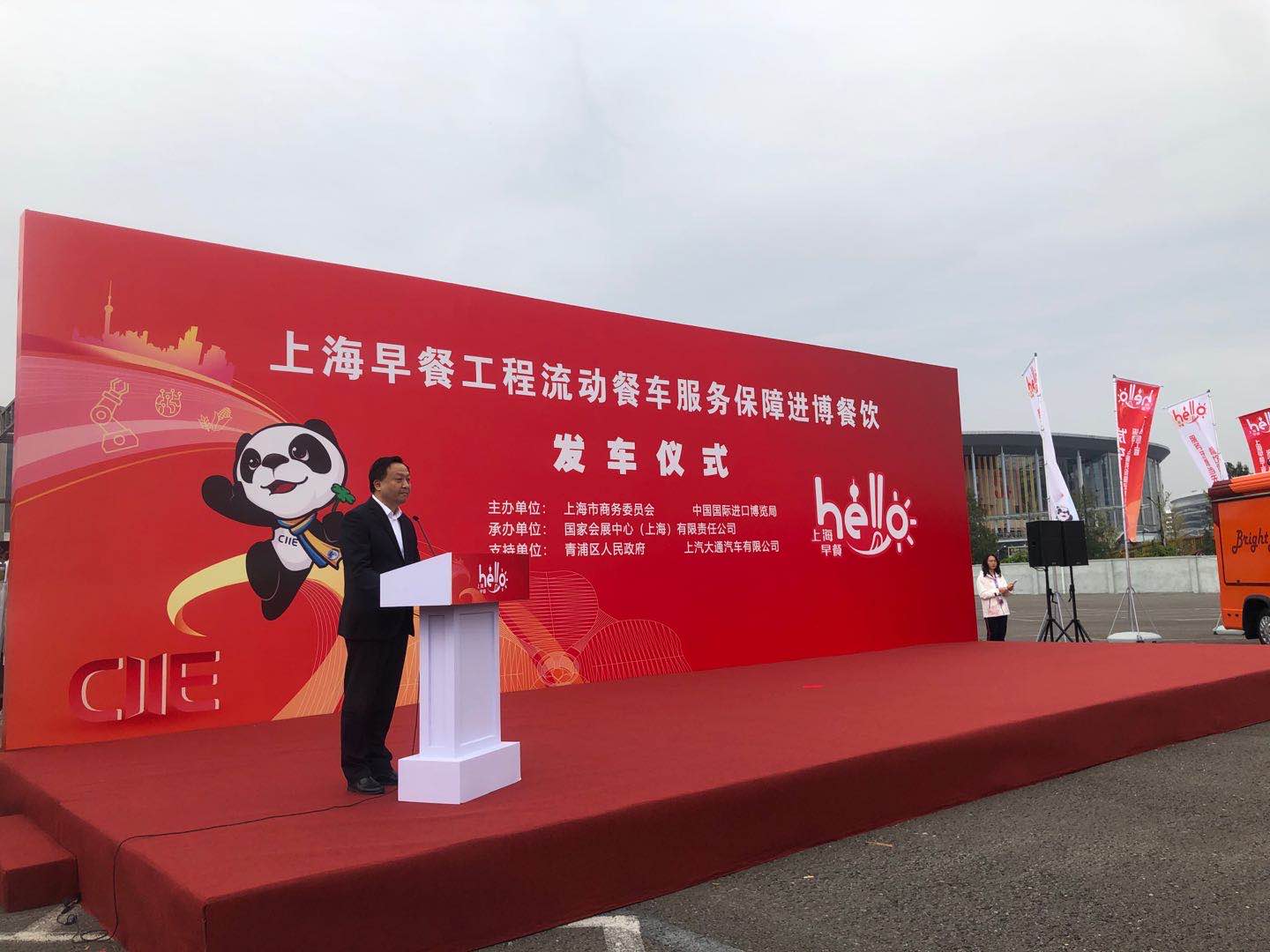11月1日,“上海早餐工程流动餐车服务保障进博餐饮发车仪式”举行。来自良友便利、百联逸刻、粮全其美、盒小马、巴比、肯德基6家企业的19辆流动餐车正式进驻进博会。