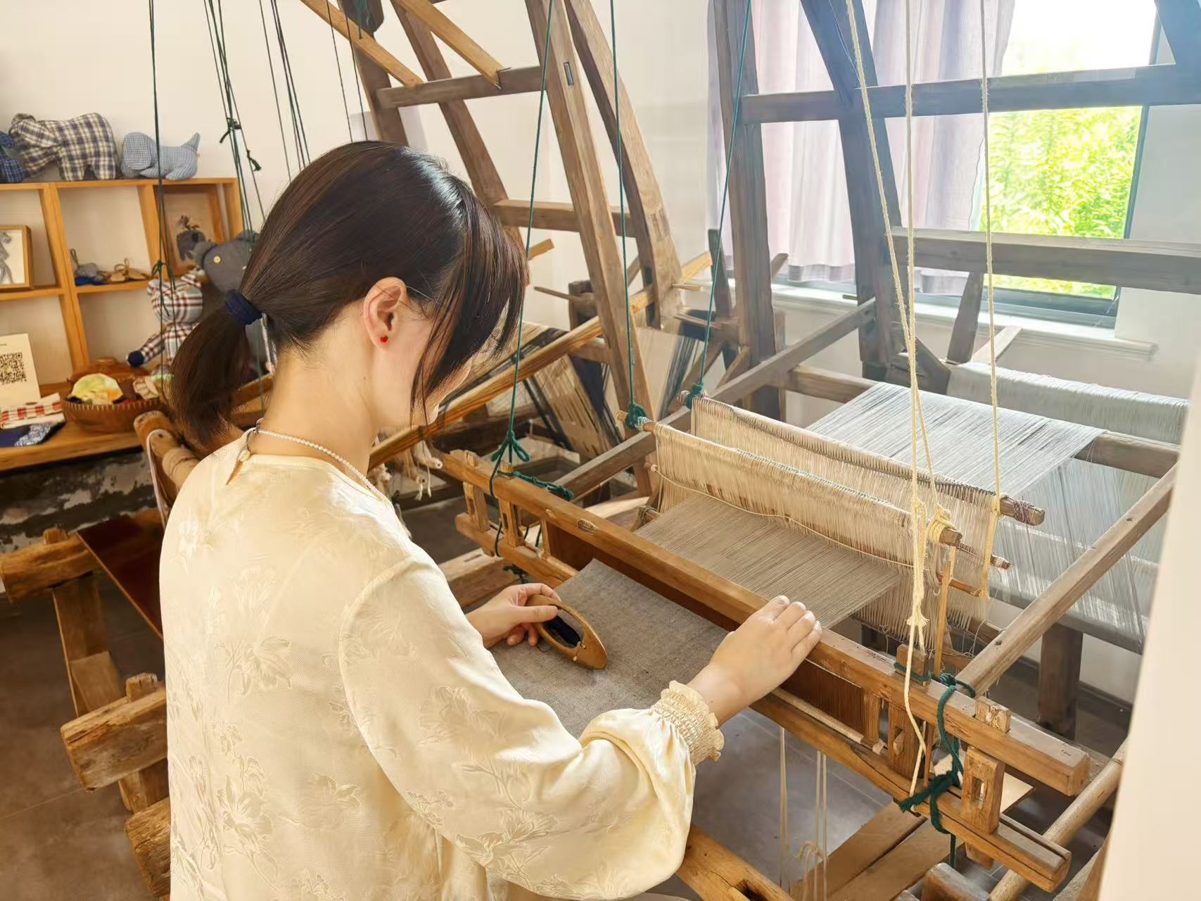 传承崇明土布非遗文化(视频)。劳动报记者陆燕婷 贡俊祺 摄影