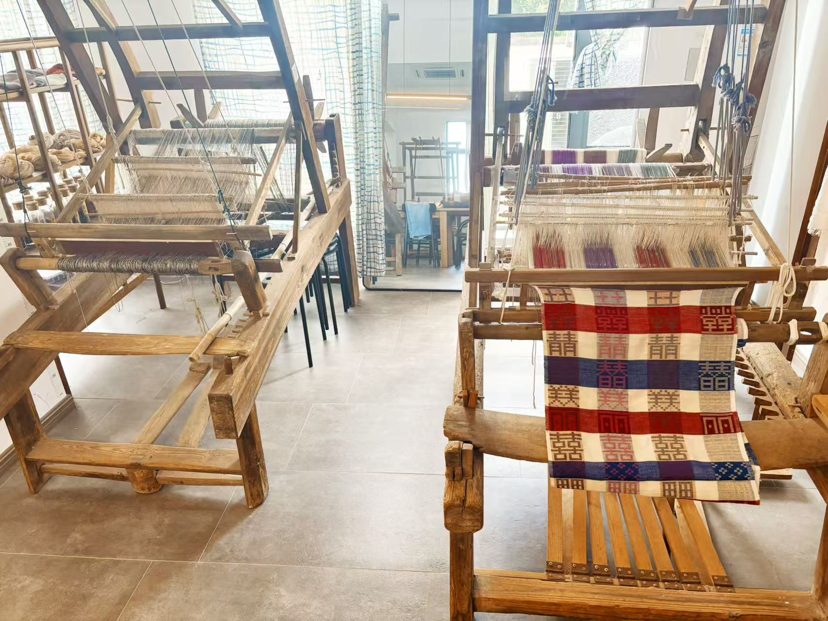 不同的织布机。劳动报记者陆燕婷 摄影
