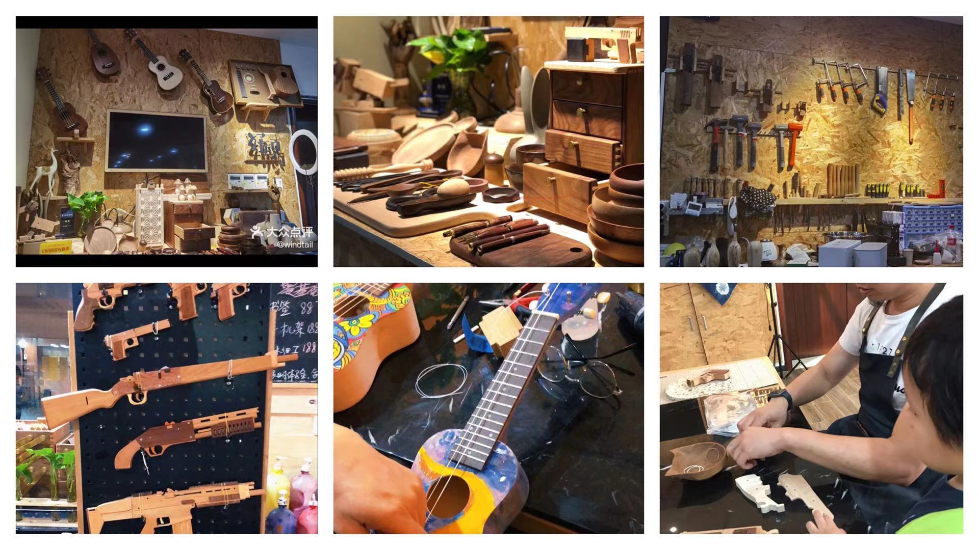 自己动手充分体验之后,老师会再帮我们机器打磨修改,虽然难度不是很大,但制作过程中会带来喜悦和完成作品的成就感。多数客人会选择做一把彩绘尤克里里,宝爸们则可以带上儿子做一把98K手枪刻上自己的名字,很有纪念意义。