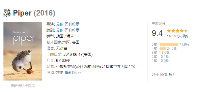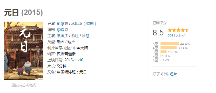 该片单集片长5分钟,内容既有萌系的治愈,又传达了“善”和“爱”,非常推荐。