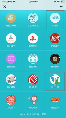 “小海鸥”板块有很多音频资源,而“乐于学”板块有根据年龄分层的电子资源。