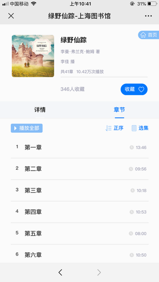 国学经典、童话名著等音频都有,比如《绿野仙踪》的音频,可以分集听,而且音频质量都很不错。