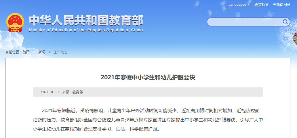 2021年寒假来啦,受疫情影响,儿童青少年户外活动时间可能减少,近距离用眼时间相对增加,近视防控面临新的压力。