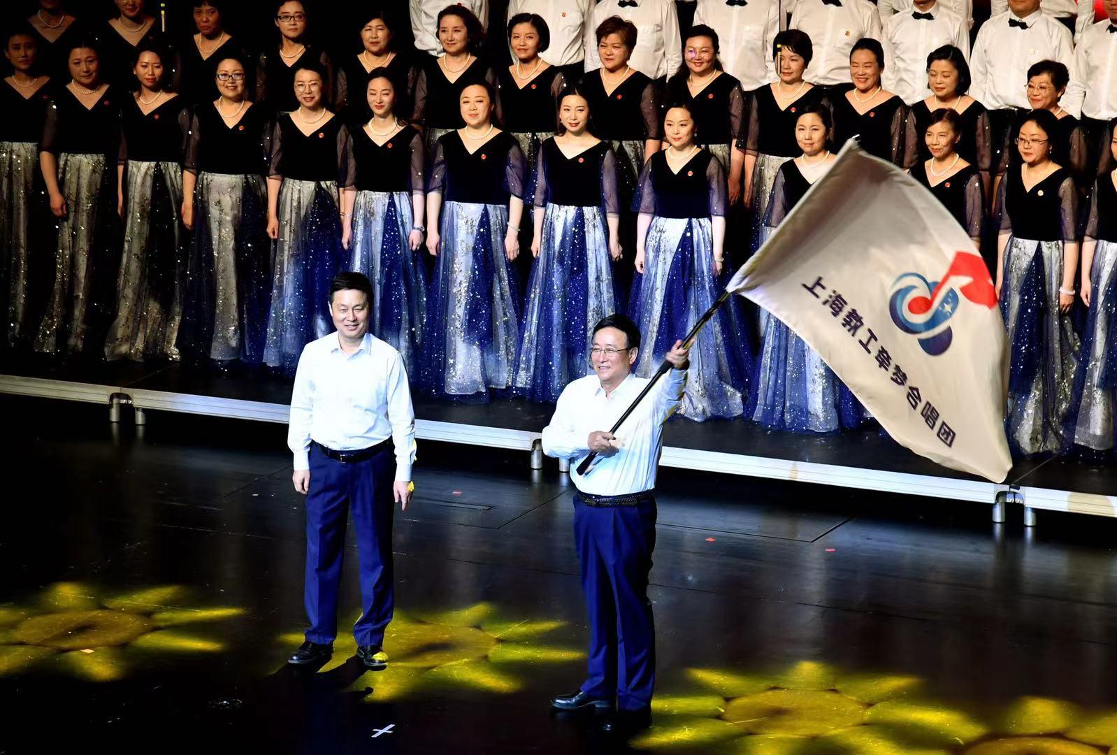 值得一提的是,除了参加比赛的25支基层工会教工合唱团,此次决赛还特邀到上海高校校长合唱团、上海特级教师特级校长联谊会魔都“特特”合唱团、上海教工牵梦合唱团、中国银行上海市分行“追梦男声”阿卡贝拉合唱团作为“四大天团”参加展演,分别为观众带来了曲目《四渡赤水出奇兵》、《天耀中华》、《中国梦想》、《我的中国心》,各展风采,精彩纷呈。在今天的节目尾声,上海教工牵梦合唱团成立授旗仪式举行。