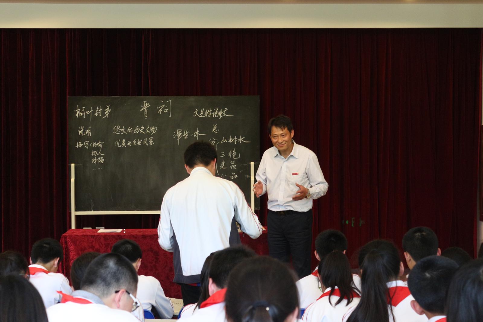 课上张斯恒做了三件事——“蹲着教”,他和学生站在同一高度;“侧着听”,倾听每一位孩子的心语;“笑着说”,给予学生阳光和信任。这堂课让师生们看到了张斯恒“爱的教学”理念的魅力,课堂气氛沸腾了,听课的老师们惊叹“原来课还可以这样上”。在之后的9年里,“张斯恒校长牵手教学公开课”成了廊下中学的一道风景线。