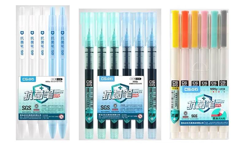 笔类文具是孩子们学习生活中自我接触、交叉接触最多的文具,点石文具为此设计“抗菌笔”,通过物理原则抑制细菌的滋生和传播,根据市场需求推出了“N95a按动全针管中性笔”和“N95b走珠君自控墨走珠笔”的产品。