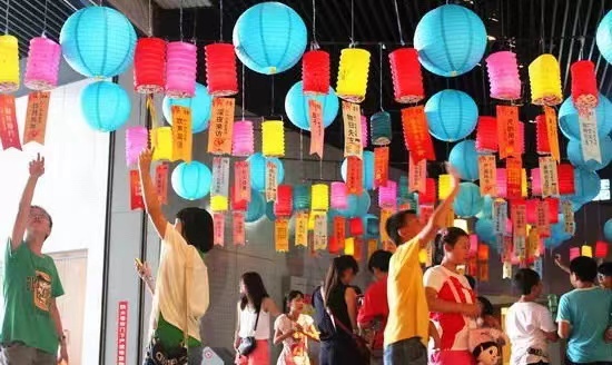中秋月圆夜在公共场所挂着许多灯笼,人们都聚集在一起,猜灯笼身上写的谜语。因为是大多数年轻人喜爱的活动,在这些活动上也传出不少爱情佳话。