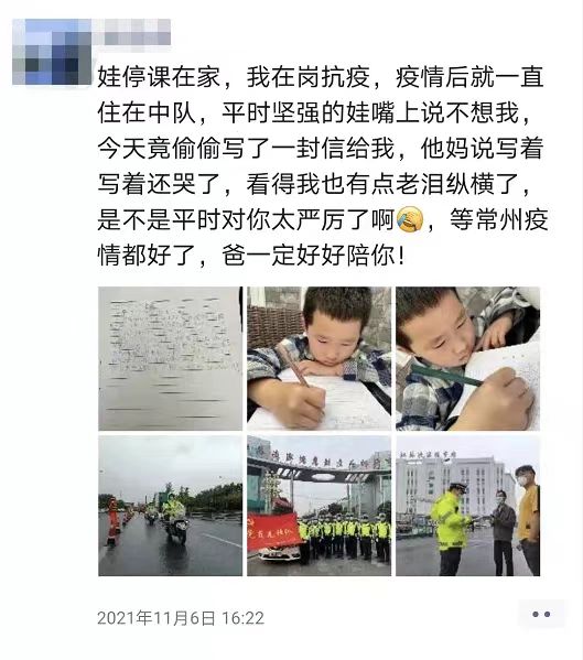 每天在岗执勤抗“疫”,这位爸爸已经一周没回家了,谈及儿子的这封信,龚辉赢有些内疚。