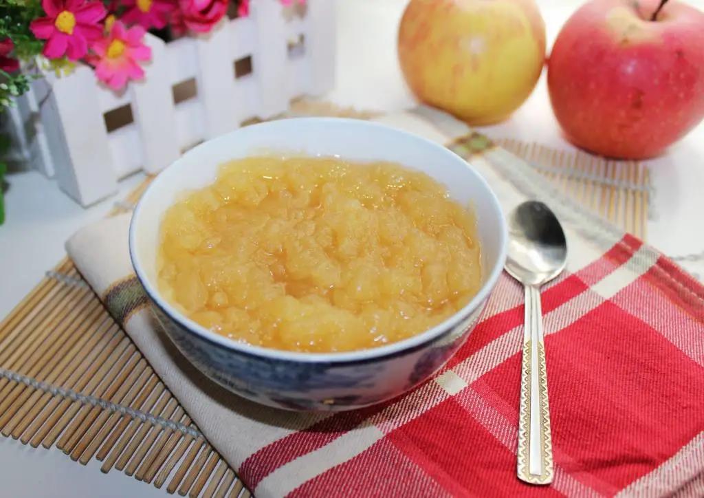 制作时,将苹果带皮切成小片,放入小碗中,隔水蒸5分钟即可,稍稍冷却后,即可食用。