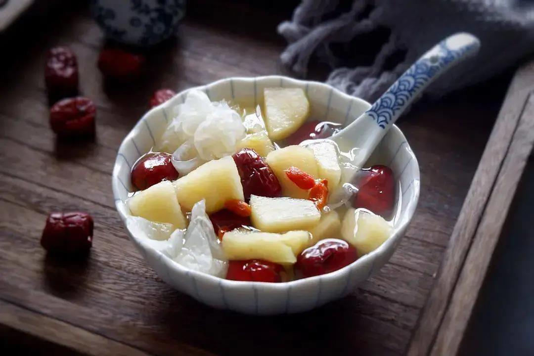 推荐川贝冰糖梨,将梨去核切块,与川贝、冰糖一起,加适量水放入碗中,隔水炖煮15分钟左右起锅,喝汤吃梨。