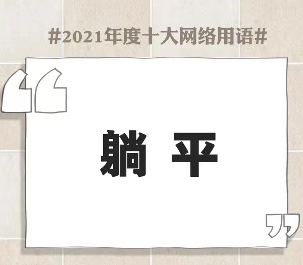 该词指人在面对压力时,内心再无波澜,主动放弃,不做任何反抗。“躺平”更像是年轻人的一种解压和调整方式,是改变不了环境便改变心态的自我解脱。短暂“躺平”是为了积聚能量,更好地重新出发。