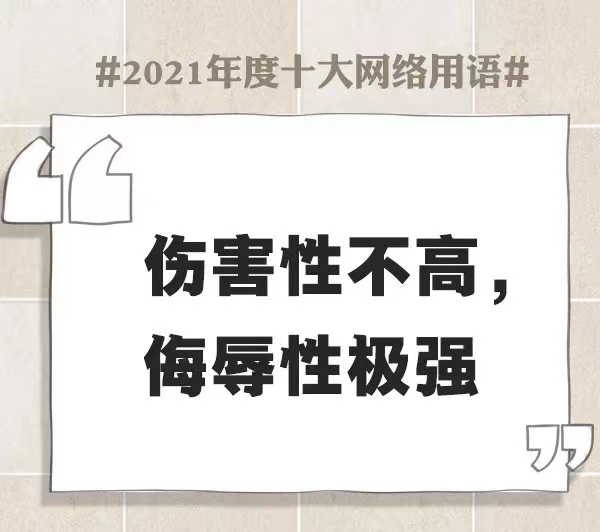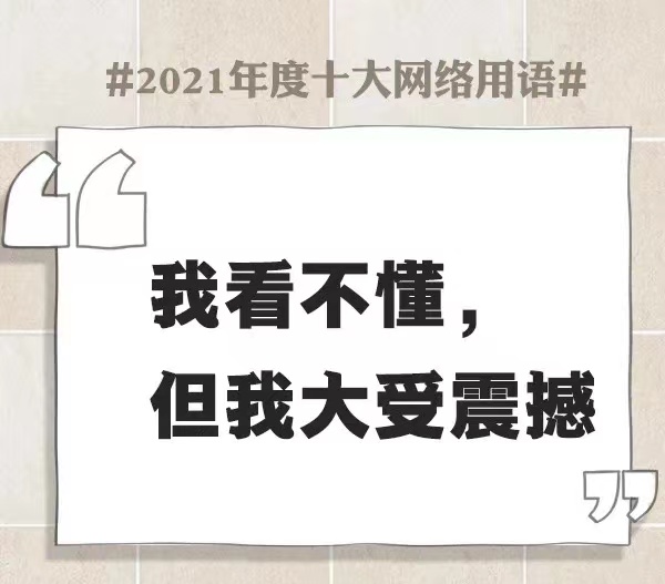 作为年度“汉语盘点”活动最具网络特色的组成部分,国家语言资源监测与研究中心6日发布“2021年度十大网络用语”。透过十大流行网络用语,一幅幅鲜活生动的网络语言生活画面跃然纸上。本次发布的十大网络用语依次为:觉醒年代;YYDS;双减;破防;元宇宙;绝绝子;躺平;伤害性不高,侮辱性极强;我看不懂,但我大受震撼;强国有我。