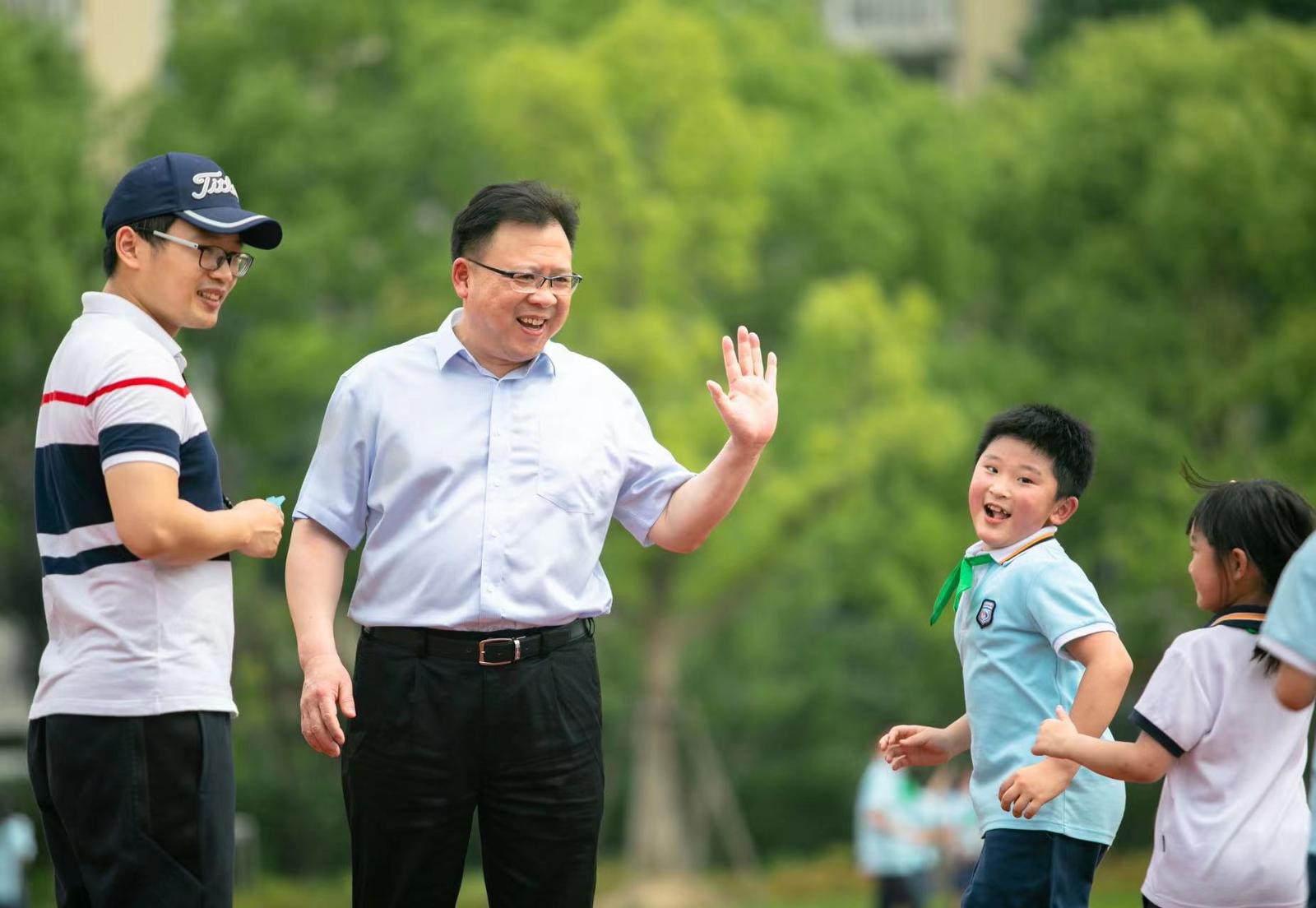 为了“双脚不离地(学校)”,这些年来,何学锋再忙都坚持做这么几件事:每届新生的第一次家长会,他一定会到场主讲,四个校区就讲四遍,从不厚此薄彼,直到把问题讲清说透;每年六一晚会,他会扮演机器猫、佩奇爸爸等各种卡通人物,只为亲近学生,倾听孩子们的心声;参加学生10岁集体生日,和他们一起经历人生重要时刻……“和蔼亲切,没有架子。”学生喜欢这位校长爸爸;“海派大气,睿智善良,有人格魅力。”老师们打心底里敬佩他。