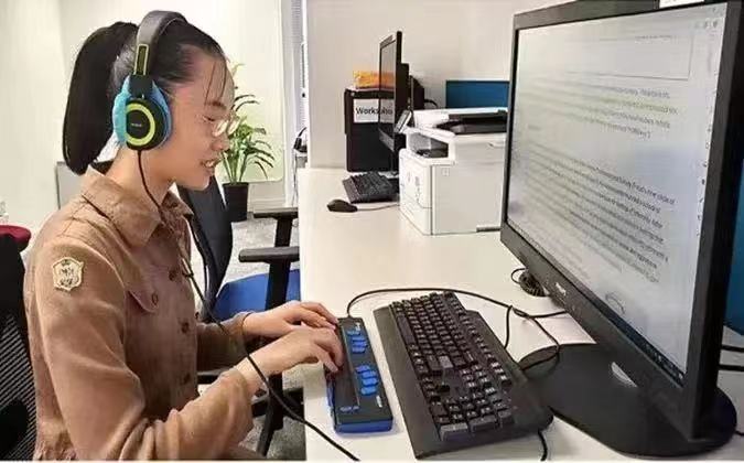 在父母、老师和同学们的帮助下,小朱“独辟蹊径”,逐渐学会应用各类读屏软件和辅助软件,自学使用盲人电脑,掌握了新的学习方法和技能,她每天反复回听讲课录音,花成倍的时间预习、复习,常常至深夜,学业也逐渐走上了正轨。