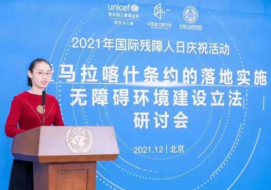 2021年的国际残障人日活动汇集了中外各国专家,朱苓君负责主持主旨演讲部分,其中亮点之一就是探讨《马拉喀什条约》在我国落地实施。该条约将帮助视障群体解除书籍版权限制,方便转换为无障碍书籍。