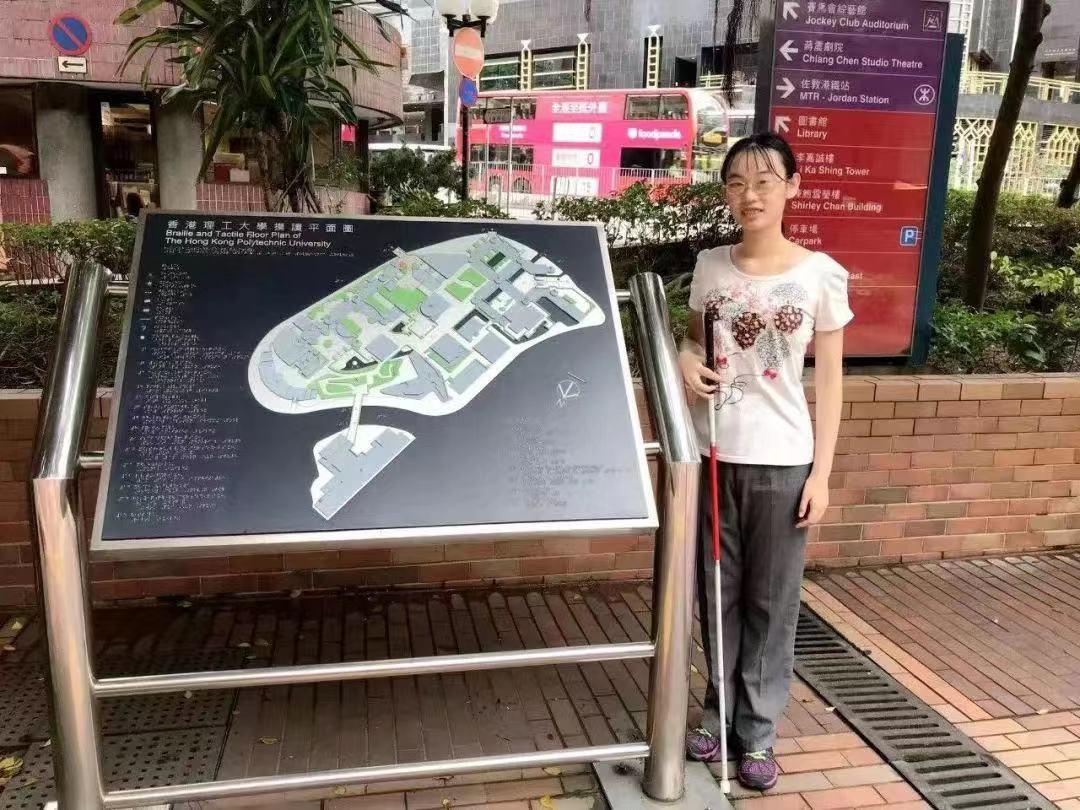 “独立去香港理工大学交换,全英文授课、众多的英文生词,对于全盲的我,学习更具挑战。”困难依旧重重,但小朱从未轻言放弃。作为华东师范大学首位去香港理工大学交换的大学生,也是香港理工大学应用社会科学系该学期唯一的内地交换生,小朱深知自己不仅仅代表着华东师大学生的形象,更是代表着新时代内地视障大学生的形象,本应修读三门全英文课程的她,主动加修了两门课程,并以3.4绩点的优秀成绩结业。