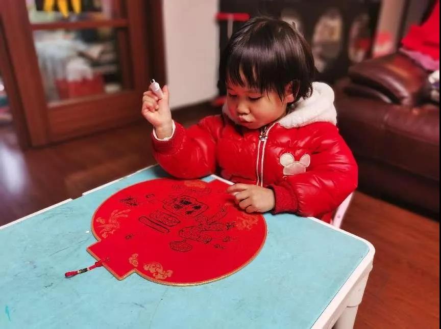 感受过年味道,红色灯笼上写画下祝福。提灯笼、挂福字、贴对联,浓浓的年味,幸福的童年。——李欣潼妈妈