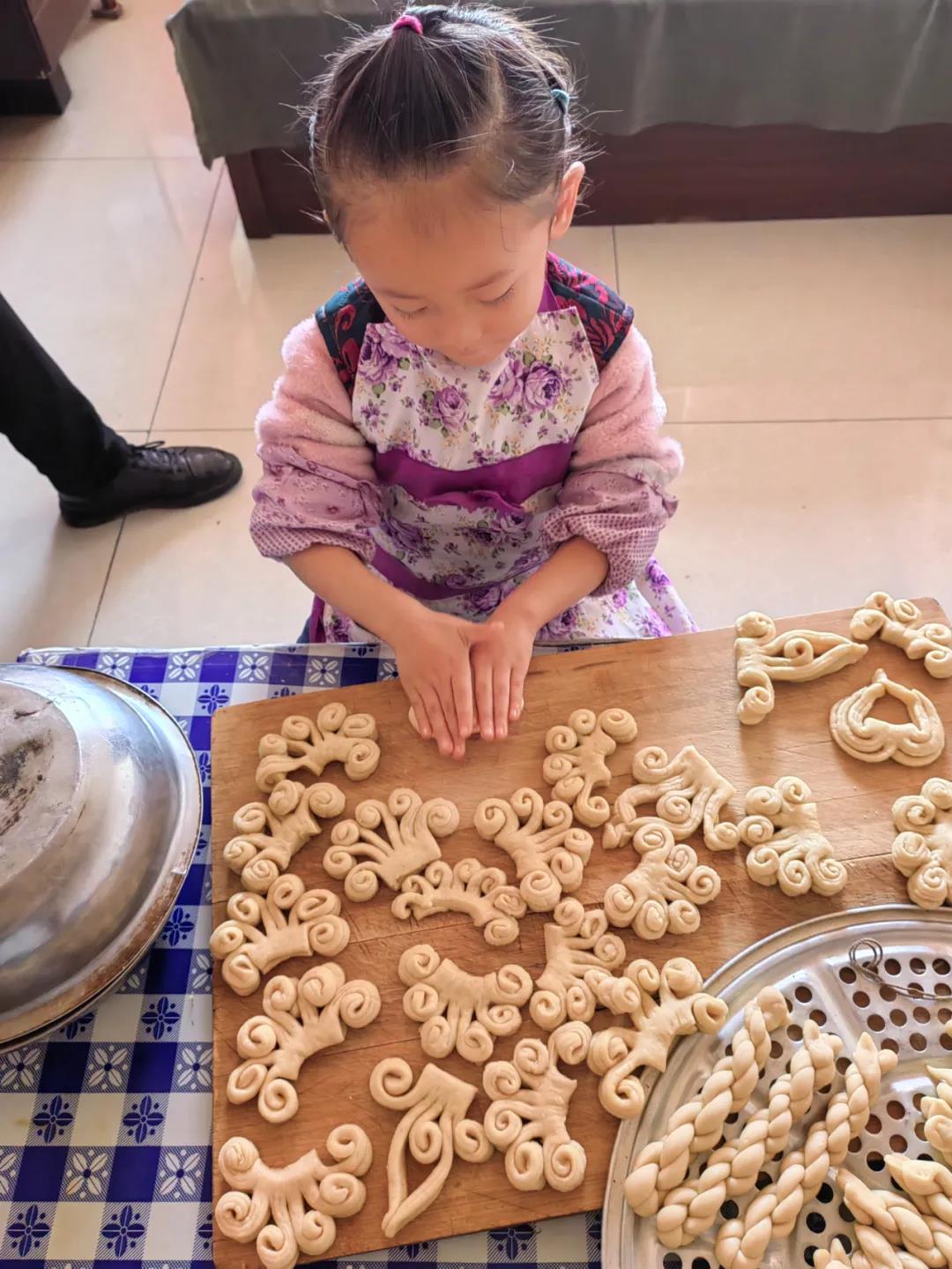 “剪刀牌”枣花代表着一帆风顺,儿子把面搓成一根圆状长条,然后上下交叉,再放上两个枣,可爱又俏皮的“剪刀手”华丽登场。——硕果儿(投稿人昵称)