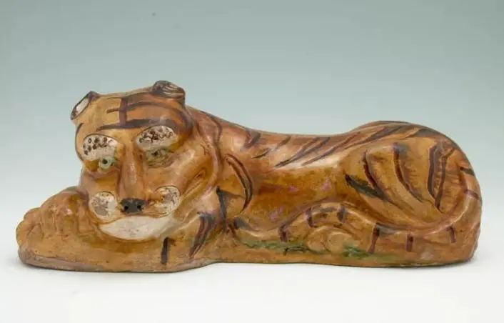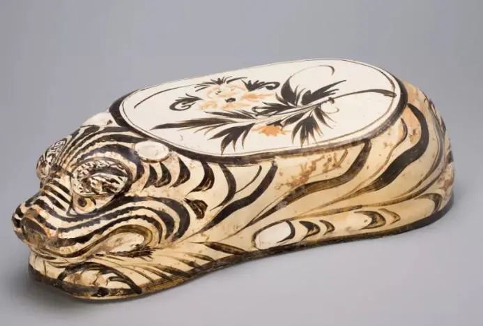 虎形瓷枕,融合瓷枕的消暑纳凉的功效以及老虎图纹的装饰效果于一体,极大地丰富了瓷枕的表现力和艺术性。