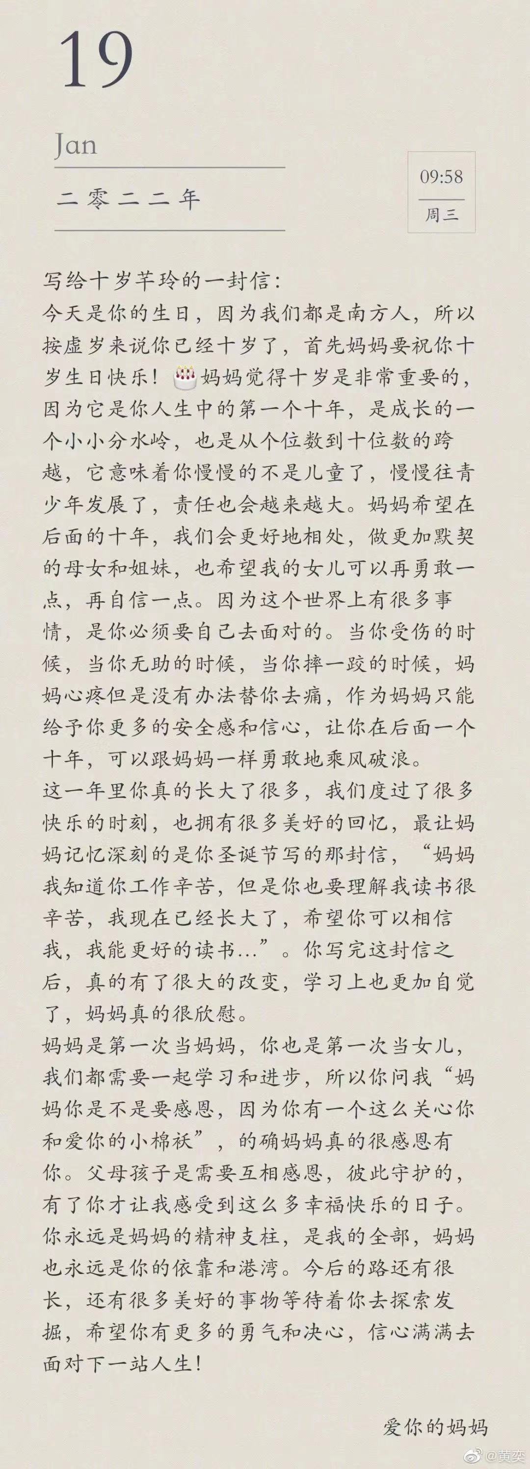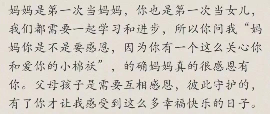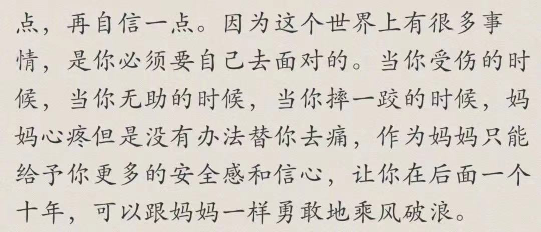 字里行间不仅寄托了妈妈对孩子最真切的关爱,也诠释了父母对孩子最好的尊重。