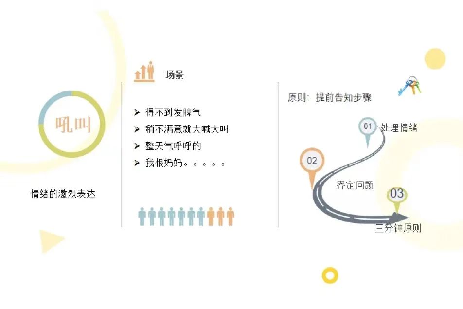 答:吼叫本身源于大脑发展发育的不平衡带来的情绪,父母先不要计较,因为这不是孩子的主观表达。它可能是因为激起了孩子过去的愤怒,可能是由于孩子学习了父母平时表达情绪的方式,也可能是因为孩子不会表达情绪。
