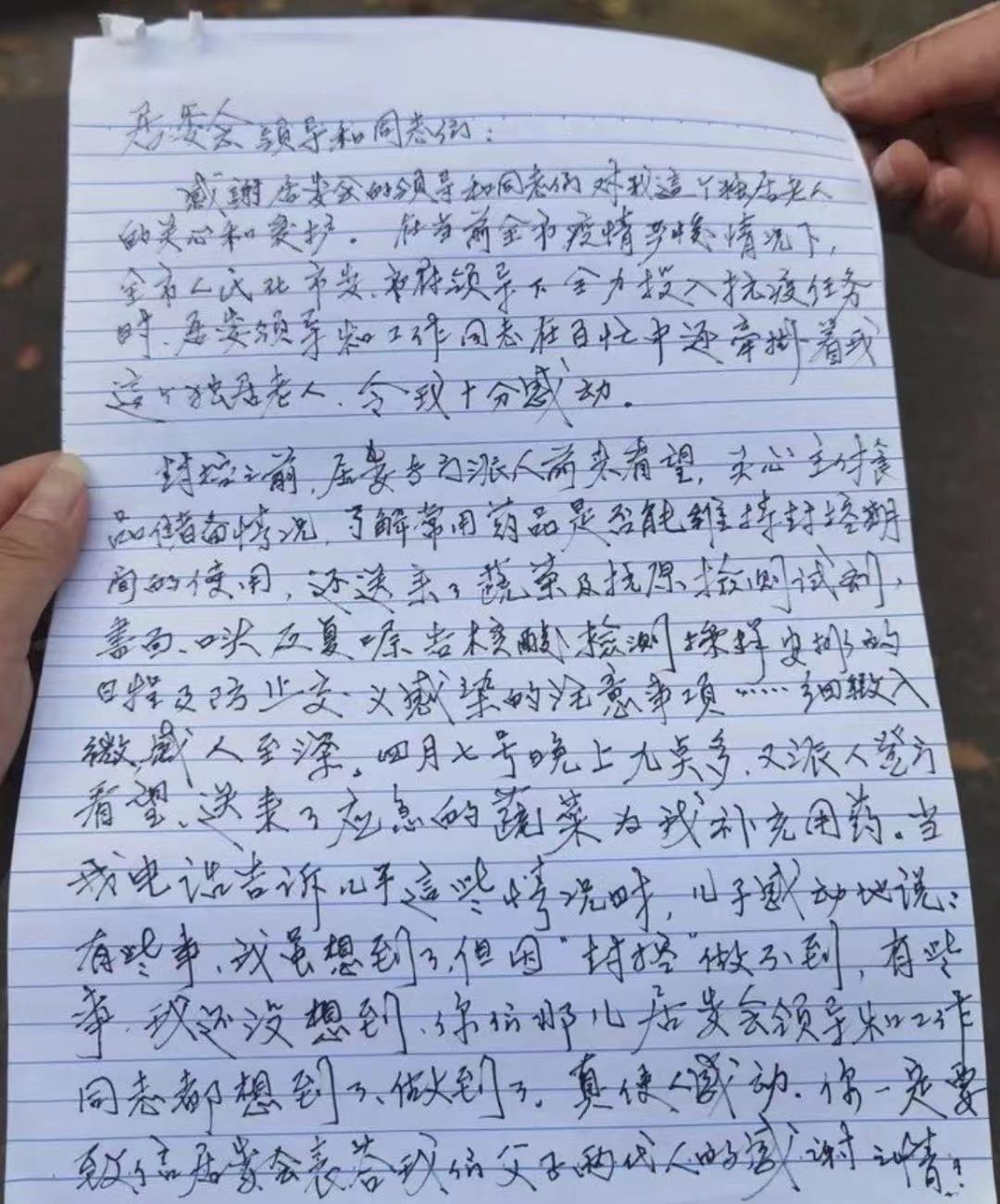 他们不一定玩得转社交媒体,但写得一手好字,这位老人用漂亮的硬笔书法,致信给自己送菜的居委会。
