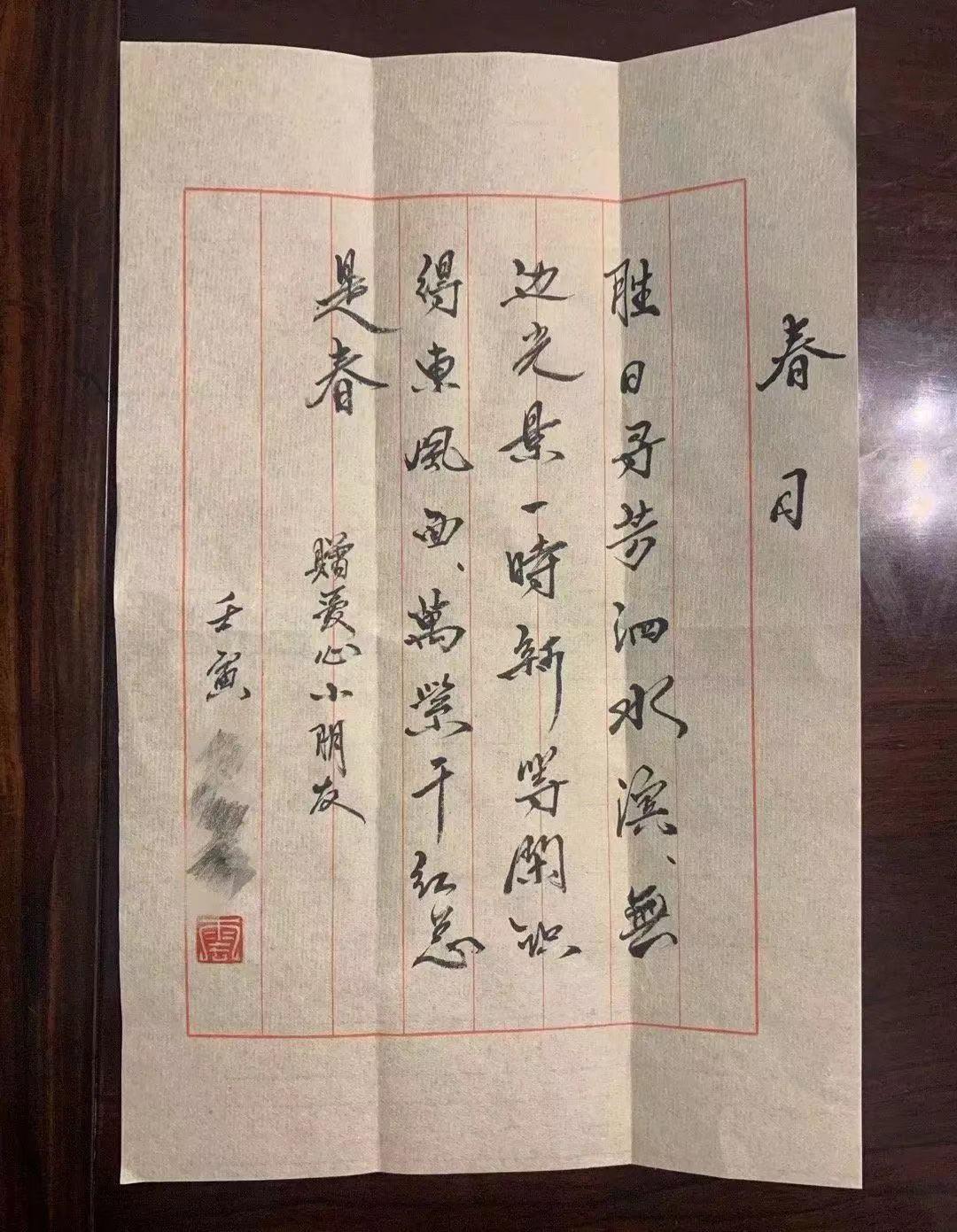 一名不懂线上支付的阿姨,请邻居代支付面粉钱后,第二天将现金送还,还附了一首自己手写的朱熹的《春日》。