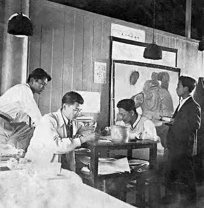 漫画宣传队在创作 右起:张仃、胡考、张乐平、陆志庠