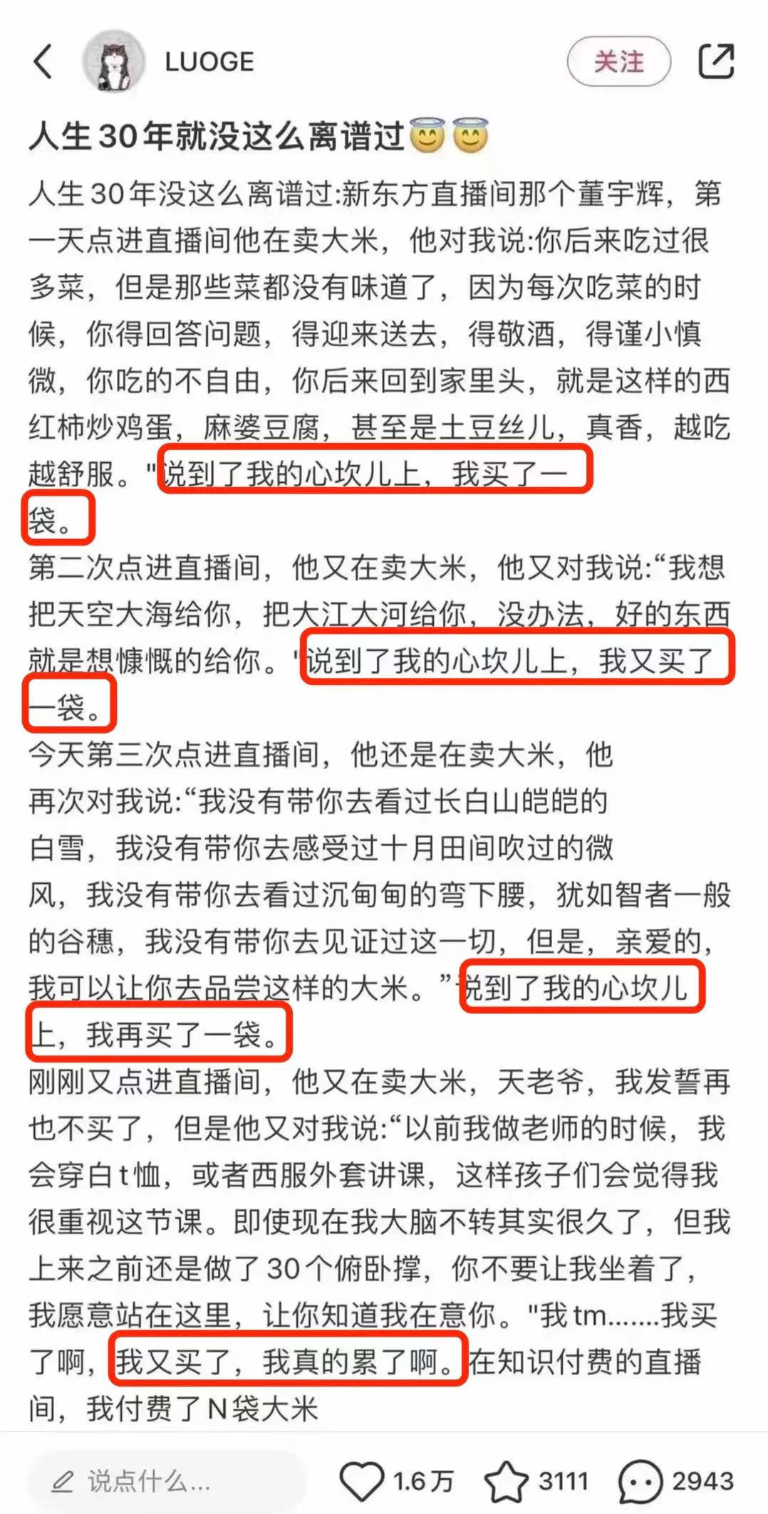 有人说看他直播,像是上了堂课,下单则是知识付费,还附送产品。