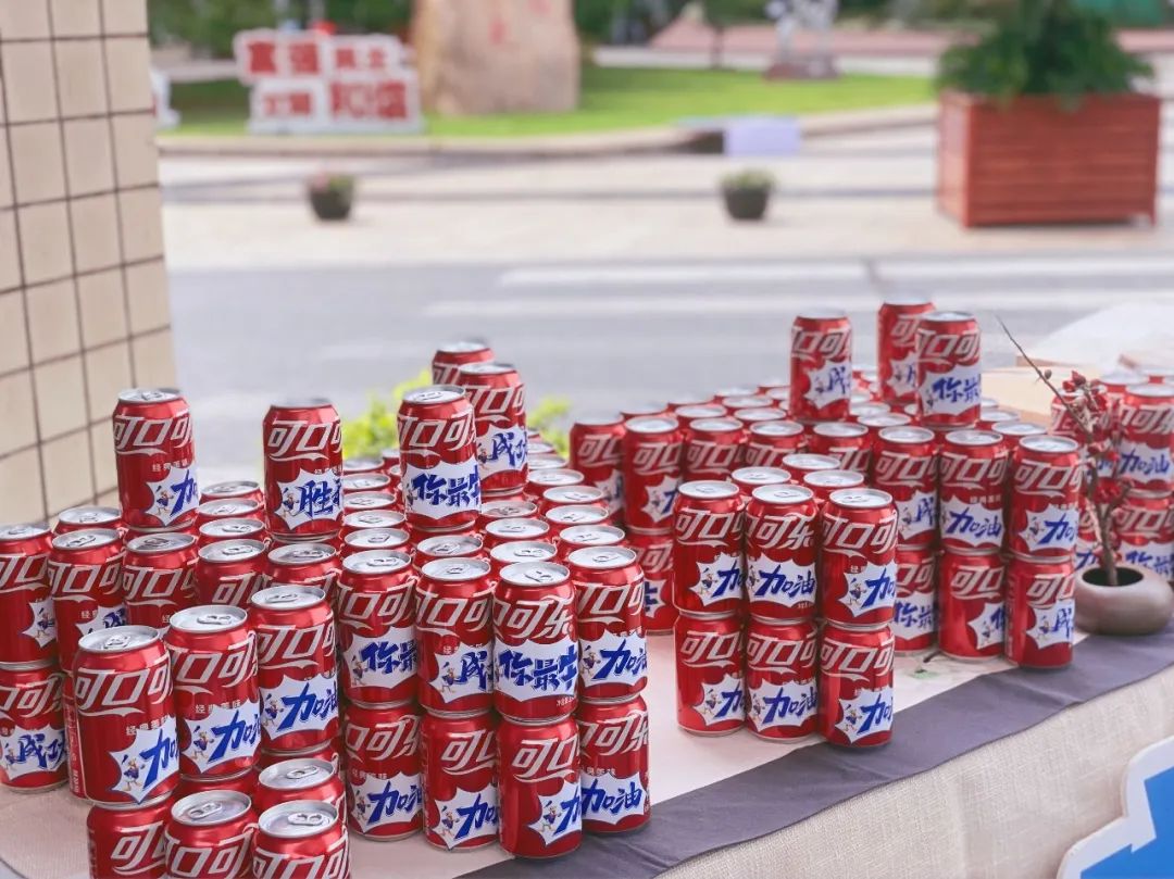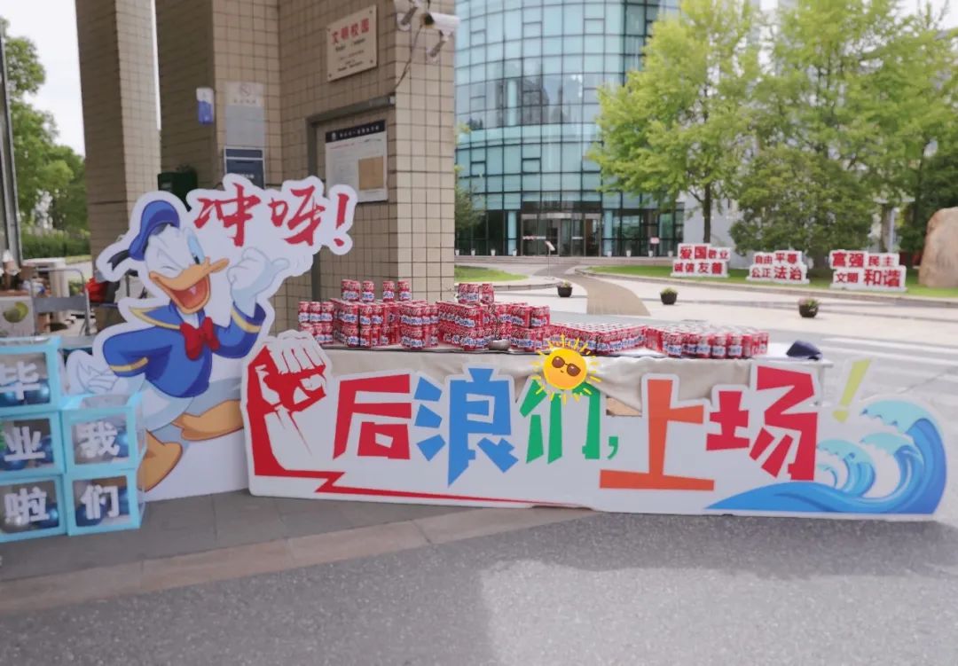 离校之际,在上海师范大学附属罗店中学校门口,300罐可乐叠放整齐,别有新意,见证了老师的不舍与希冀。