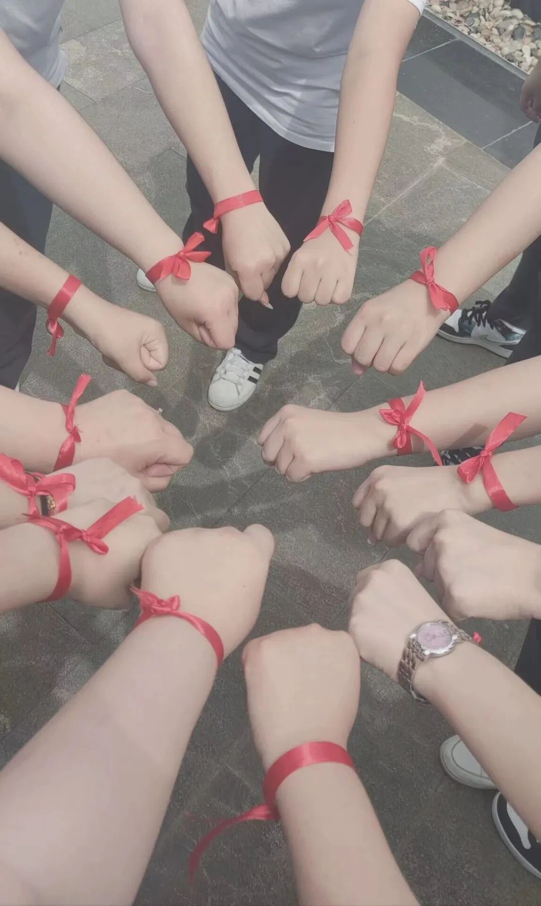 有着20多年班主任教龄的宗琴老师特意准备了幸运红丝带,离校前,她亲自为同学们一一系上。她说:“递上可乐,送上拥抱,就是告诉孩子们——加油,胜利,你最牛!希望他们不留遗憾,不畏考验,赢得荣耀。”