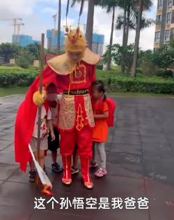 炎热的天气,厚重的衣服让他全身都是汗,但是看到女儿十分开心,并且自豪地对别人介绍“这个孙悟空是我爸爸”的时候,他就觉得自己的努力没有白费。