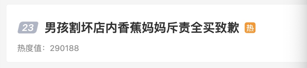日前,“男孩割坏店内香蕉妈妈斥责全买致歉”冲上微博热搜。