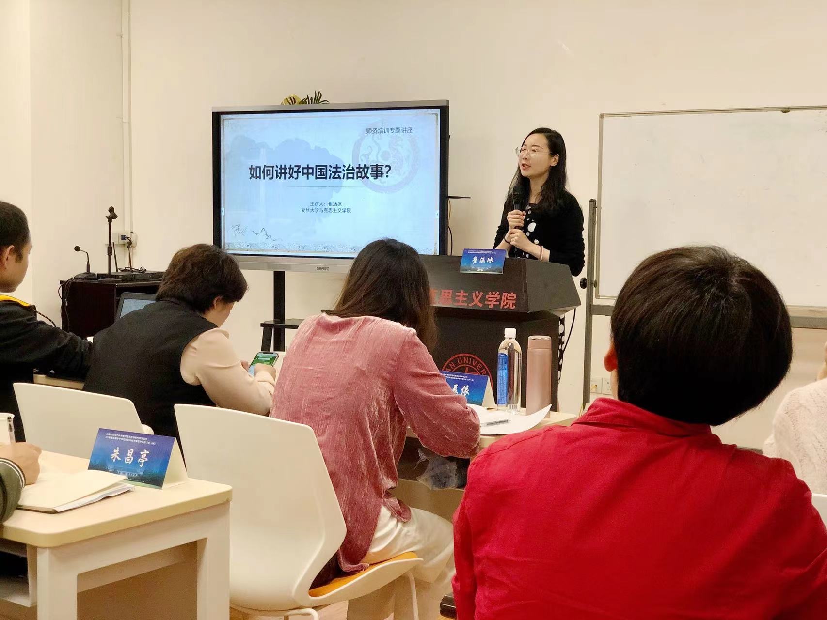 崔涵冰略带自豪地说:“我们复旦大学马克思主义学院有很多名师,在思政课教学方面,老中青三代有着良好积累与传承。几个教研室各有特色,集体备课制度也很扎实。有些学生没能选到课,还会联系老师们希望增加名额。”思政课要和学生产生深刻的联结,同学们才会用心悟。崔涵冰感到非常幸运的是,在从事教育工作的道路上,她不是孤军奋战,无论是日常教学中学校和学院领导给予的悉心指导,还是在青教赛期间,比赛指导老师、教研室前辈们和同伴们的鼎力相助,都常常令她有醍醐灌顶之感,一代代思政课老师“传帮带”的共同体精神也让崔涵冰更有方向。