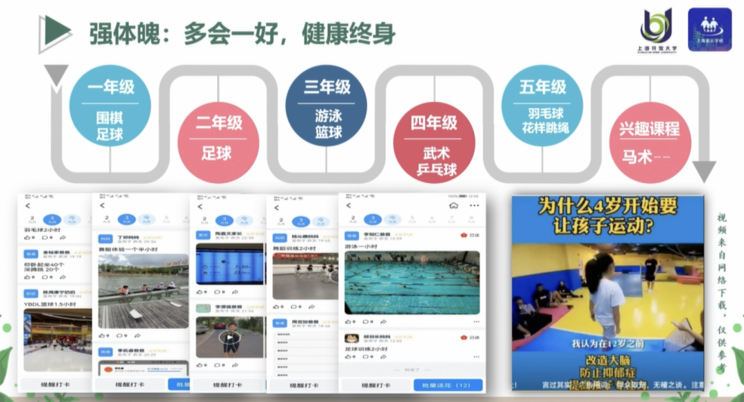 目前,大部分小学里都会安排运动课程,从课堂的运动体验到俱乐部的专业运动项目,建议家长让孩子们在各种运动的体验后,找到一两项自己真正喜爱的运动,坚持到底。