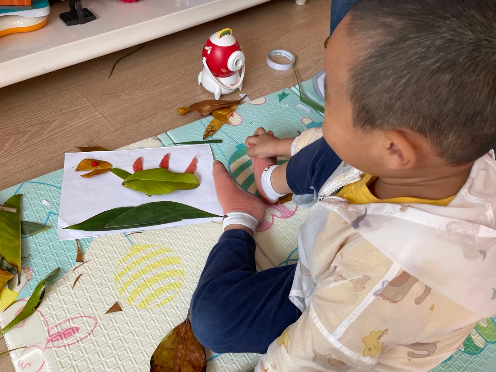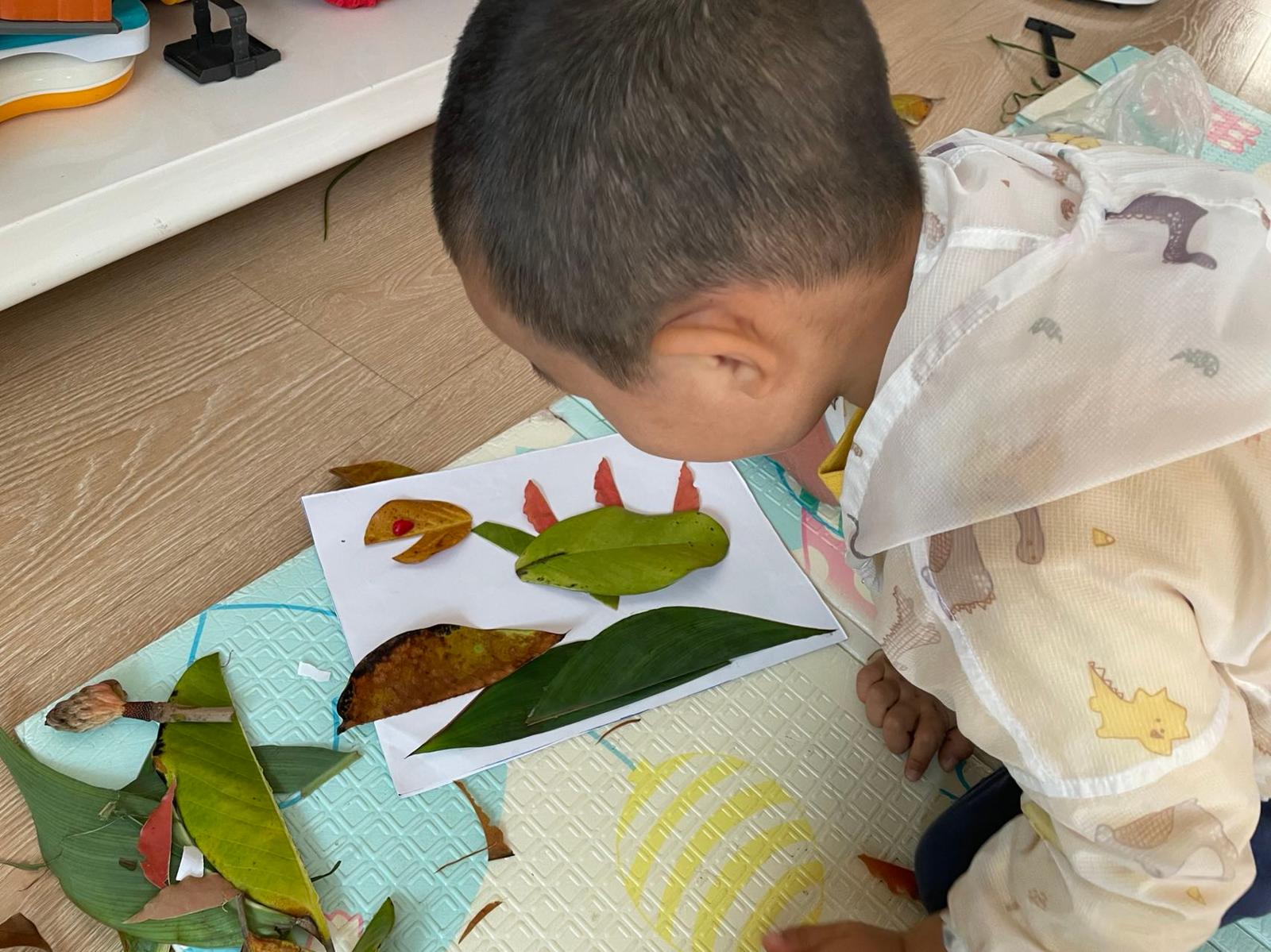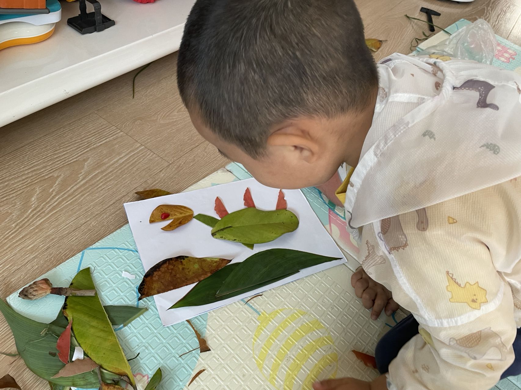 将几片树叶摆一摆,拼一拼,在孩子眼里就变成了一个有趣的形象。树叶是天然的拼贴素材,不同的形状会激发孩子丰富的想像。