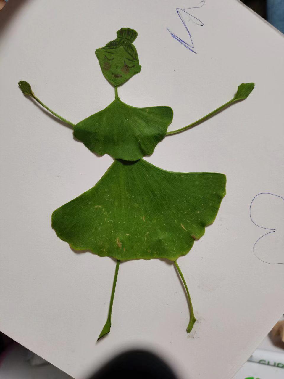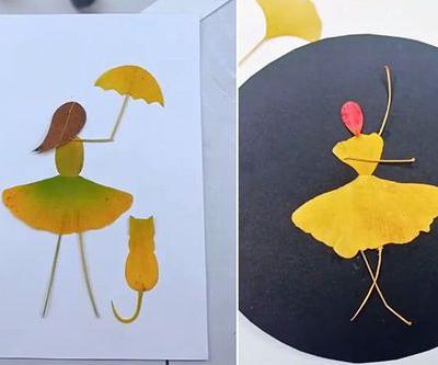 几片银杏树叶就可以用来做一个撑着雨伞或是跳舞的女孩。