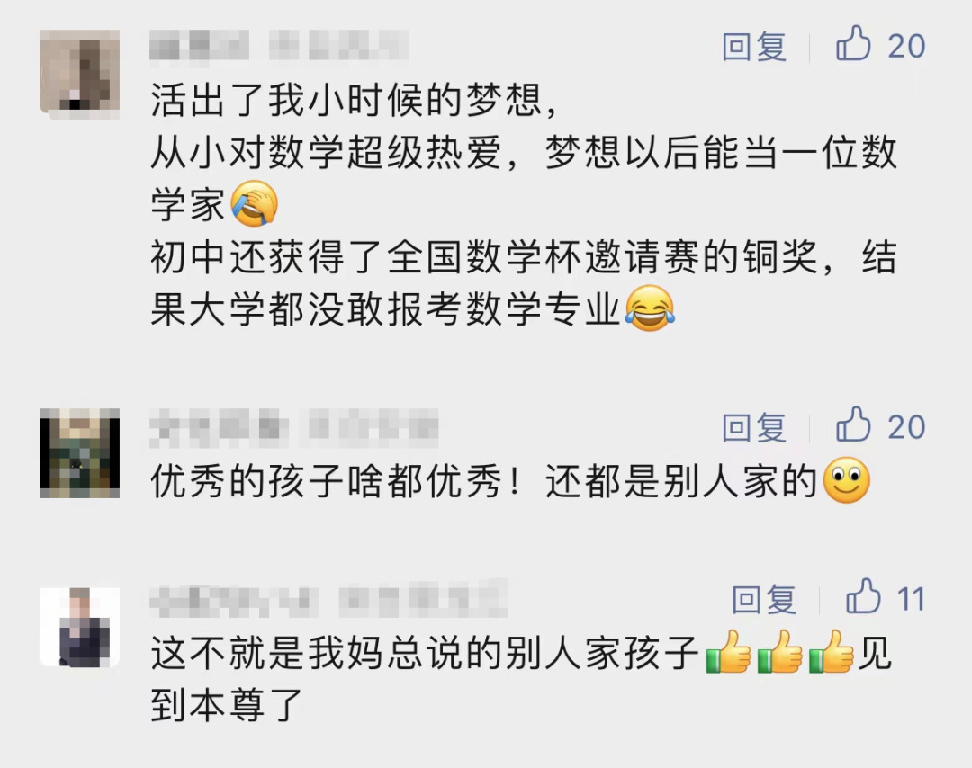 为培养女性数学家,鼓励更多女生投入数学学科的学习,清华大学举办“丘成桐女子中学生数学竞赛”,竞赛由国际著名数学家丘成桐教授发起,面向全球女子中学生。目前,张合匀已正式入围“丘成桐数学科学领军人才培养计划”,保送进入清华大学求真书院本硕博连读,明年初就将进入清华大学学习,向着“未来数学家”的目标不断求真探索。
