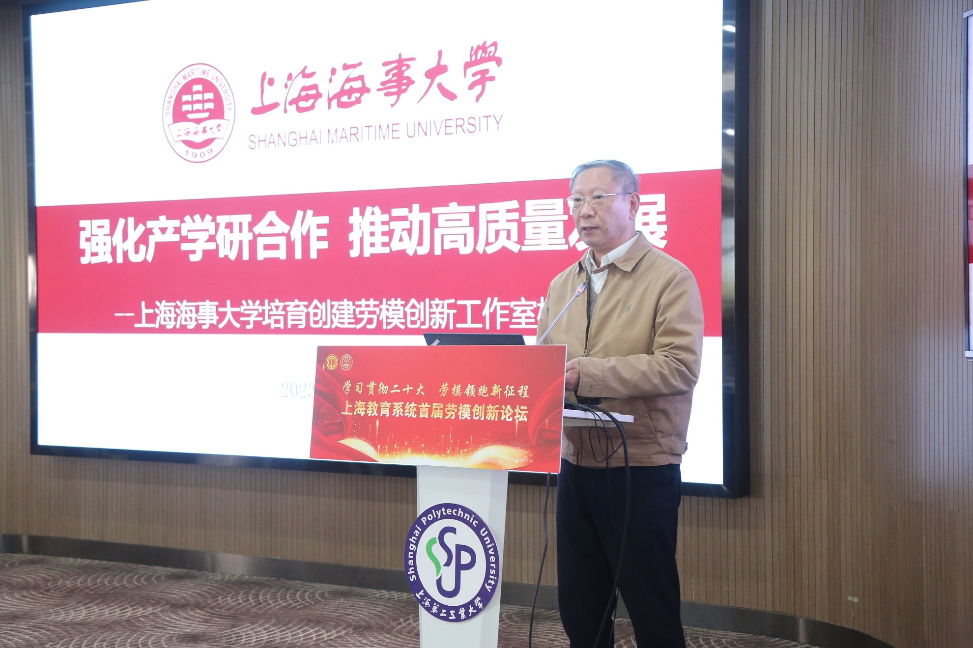 论坛上,全国劳模、同济大学建筑设计研究院研究中心主任姚启明,上海市先进工作者、上海第二工业大学马克思主义学院教授刘文,分别以《教育向未来 创新可持续》《用劳模精神点亮学生心灵》为题,作了主题发言。