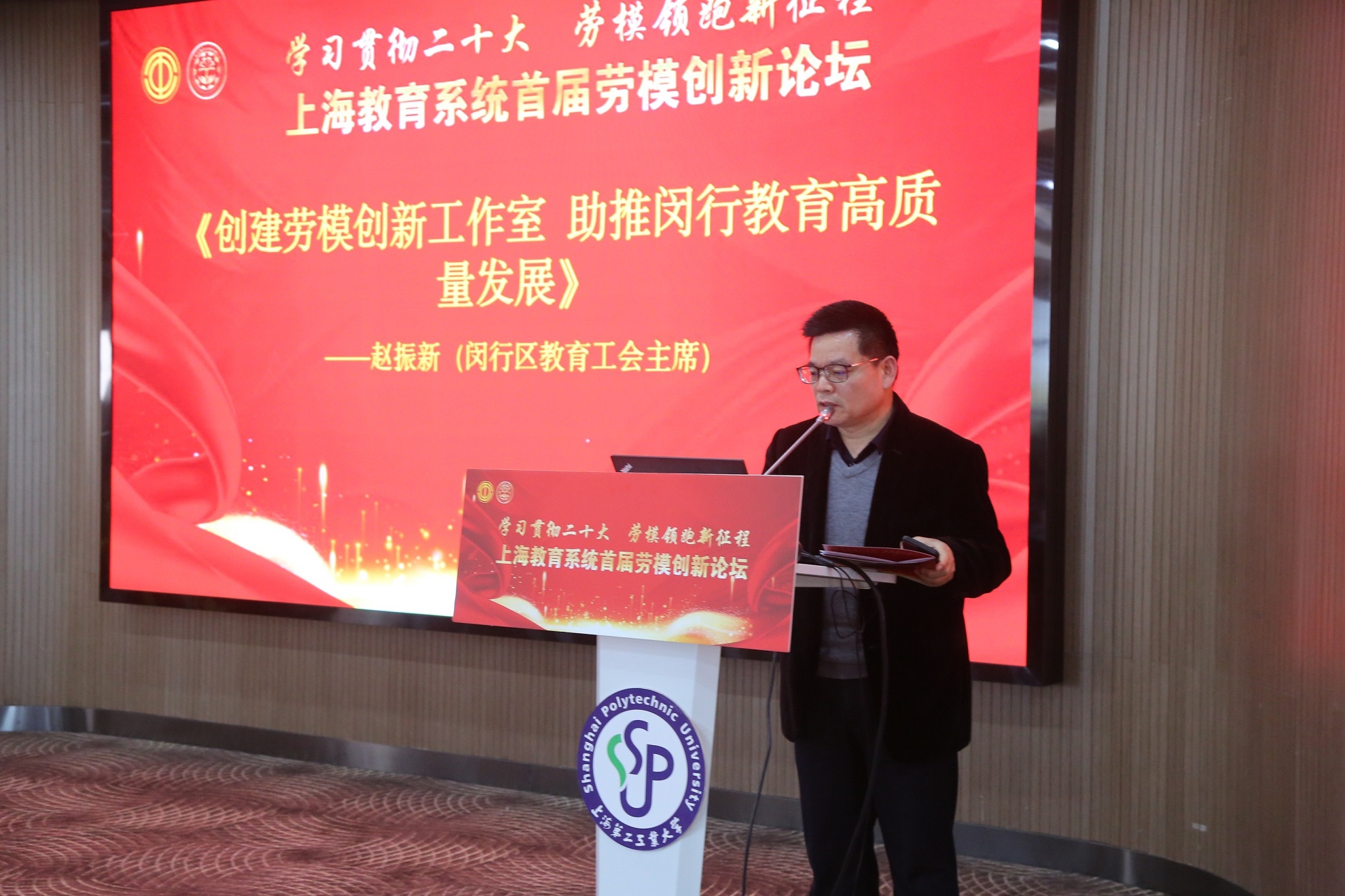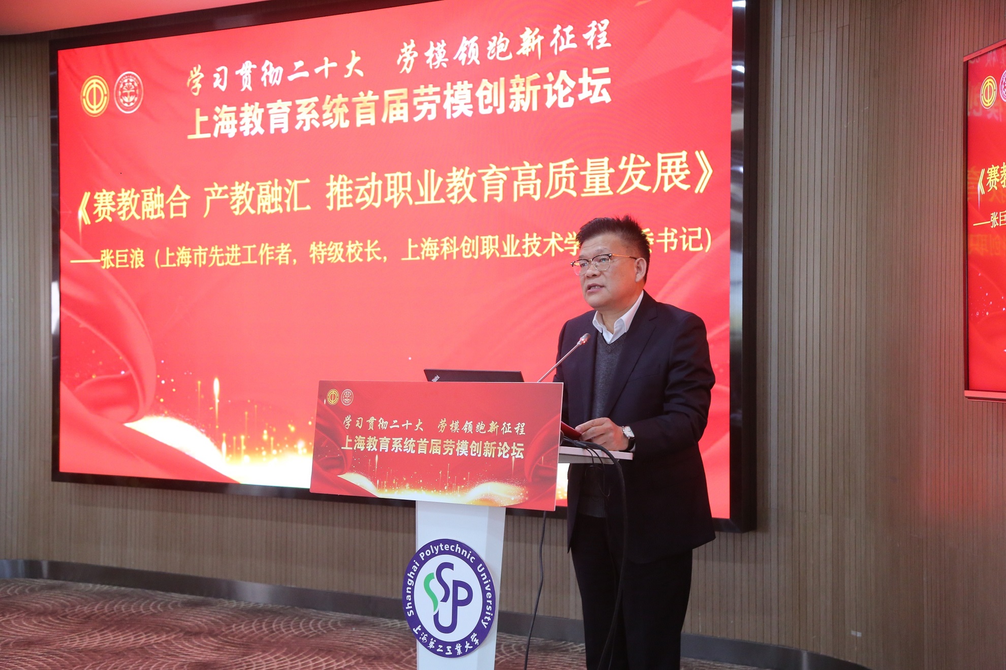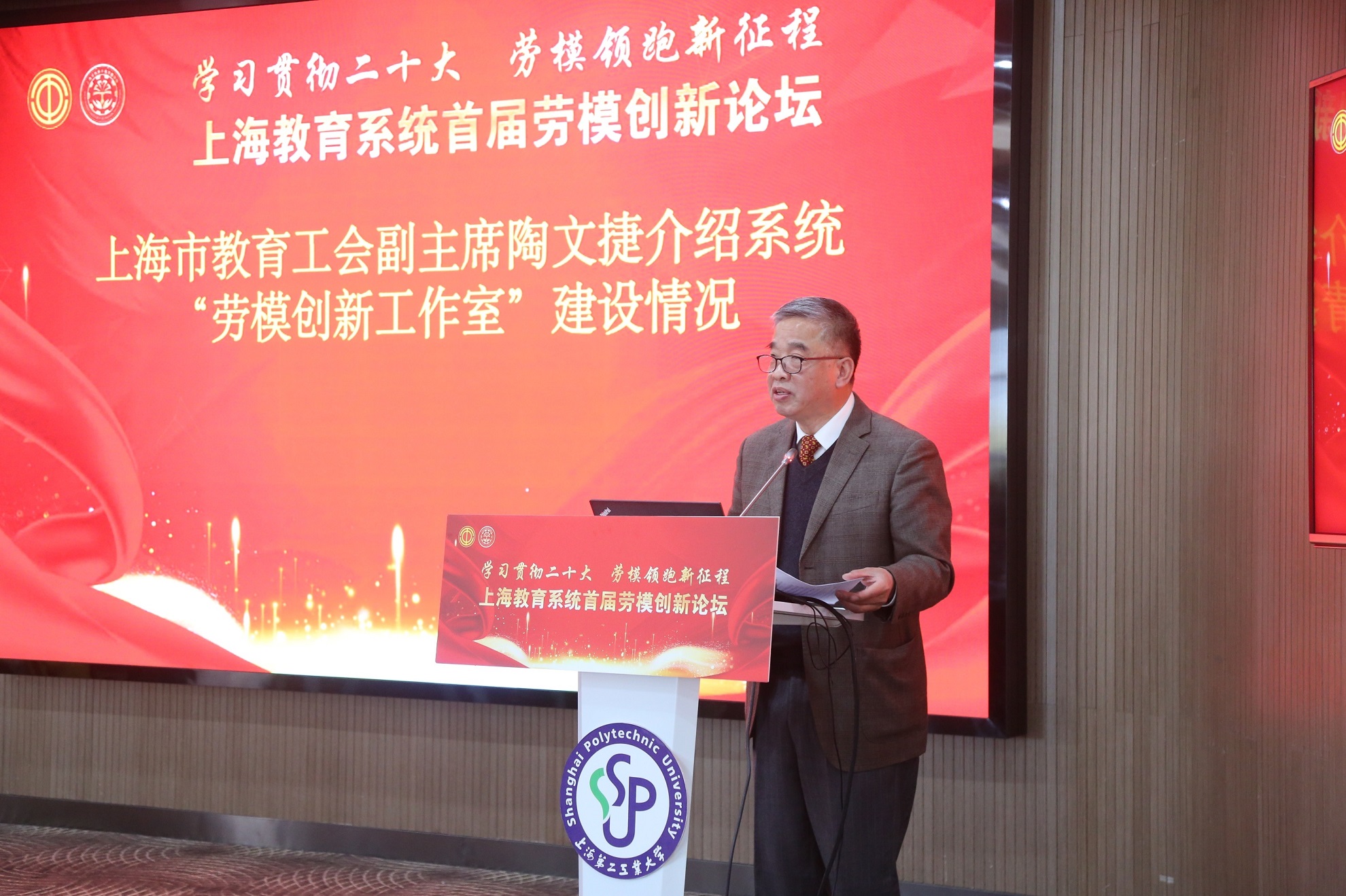 4月7日,为深入学习宣传贯彻党的二十大精神,大力弘扬劳模精神、劳动精神、工匠精神,充分发挥劳模工匠的示范引领作用,把思想统一到党的二十大精神上来,把力量凝聚到党的二十大确定的各项任务上来,一场以“学习贯彻二十大 劳模领跑新征程”为主题的上海教育系统首届劳模创新论坛,在上海第二工业大学举行。
