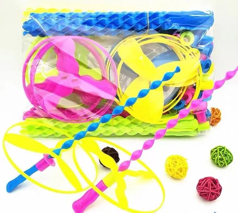 竹蜻蜓应该不少家长小时候都玩过,现在依然很受孩子的欢迎。操作很简单,把圈穿到杆上,放入飞盘,快速往上一推,竹蜻蜓就飞出去了。娃会超兴奋地追着跑,锻炼追视特别好。