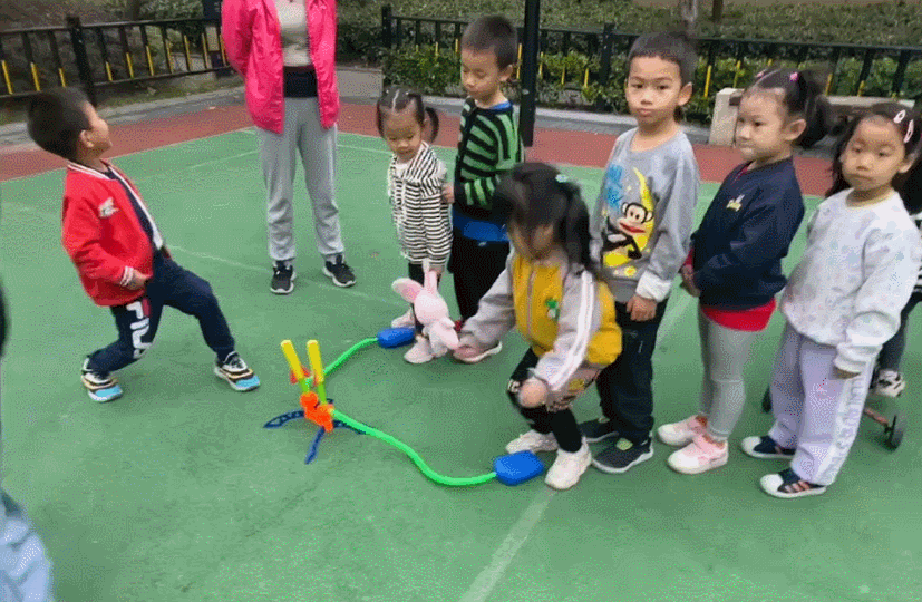 这个和揪尾巴玩具有点类似,揪尾巴练习的是快跑和躲闪运动,而躲避球呢,对小朋友的投掷能力、弹跳能力、反应能力都能练到。