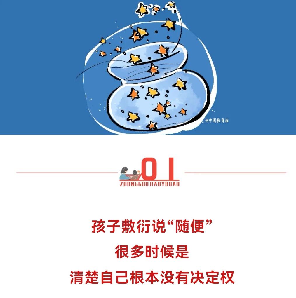 我们只有听到“随便”背后的潜台词,才不会因为孩子一句回应就火大,才能从根源上去解决孩子的积极性问题。