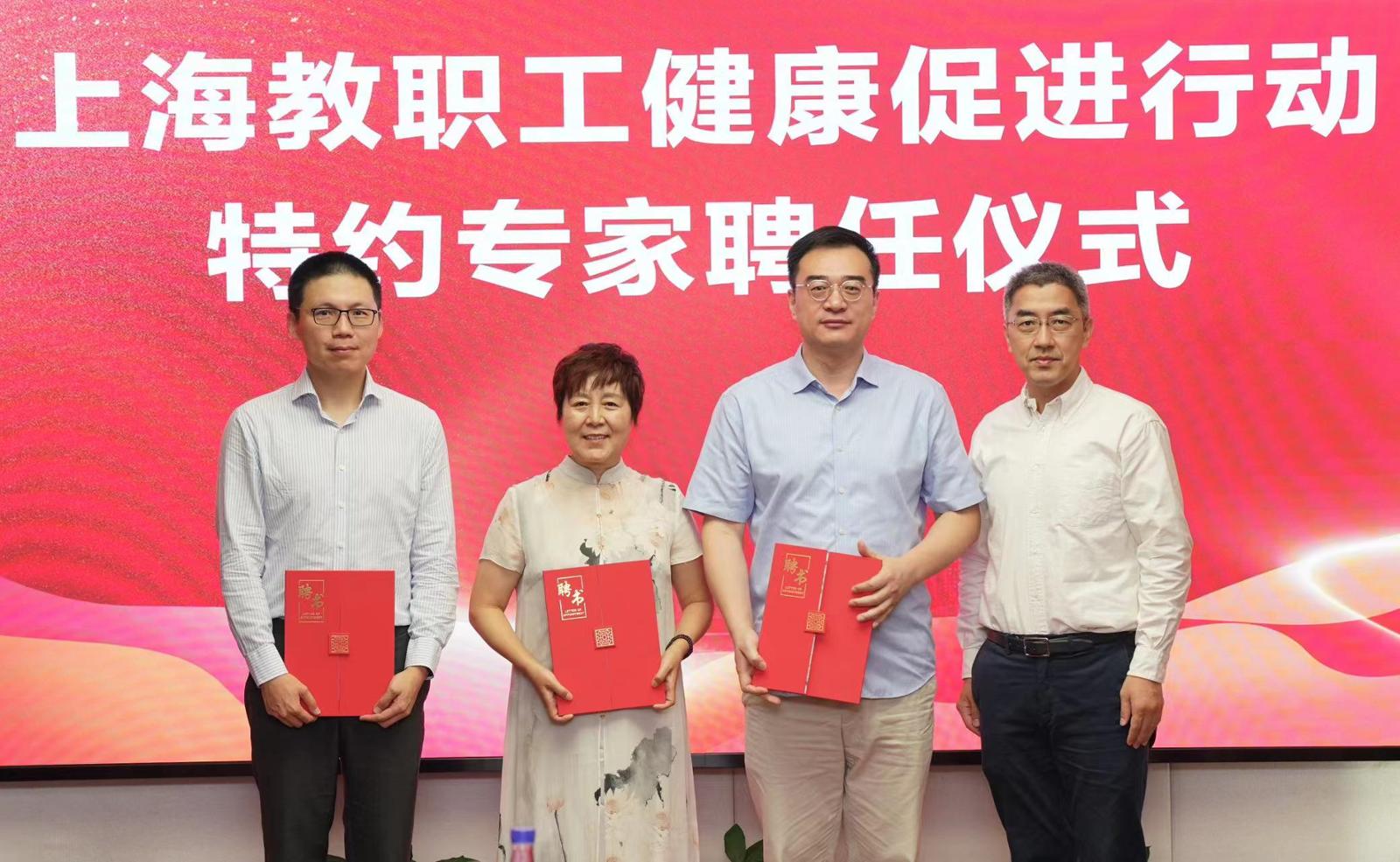 在启动仪式上,上海市教育工会副主席陶文捷和上海市健康促进中心党委书记唐文娟共同签署上海教职工健康促进行动合作备忘录。主办方还特别聘请7位医疗、心理等相关领域的知名专家担任特约专家。上海市教卫工作党委二级巡视员、上海市教育工会常务副主席李蔚宣读《关于聘请上海教职工健康促进行动特约专家的通知》,上海市卫生健康委员会副主任陆韬宏为行动特约专家代表颁发聘书。