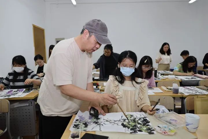 9月11日,在上海市群众艺术馆,老师指导学员画国画。新华社记者 王翔 摄
