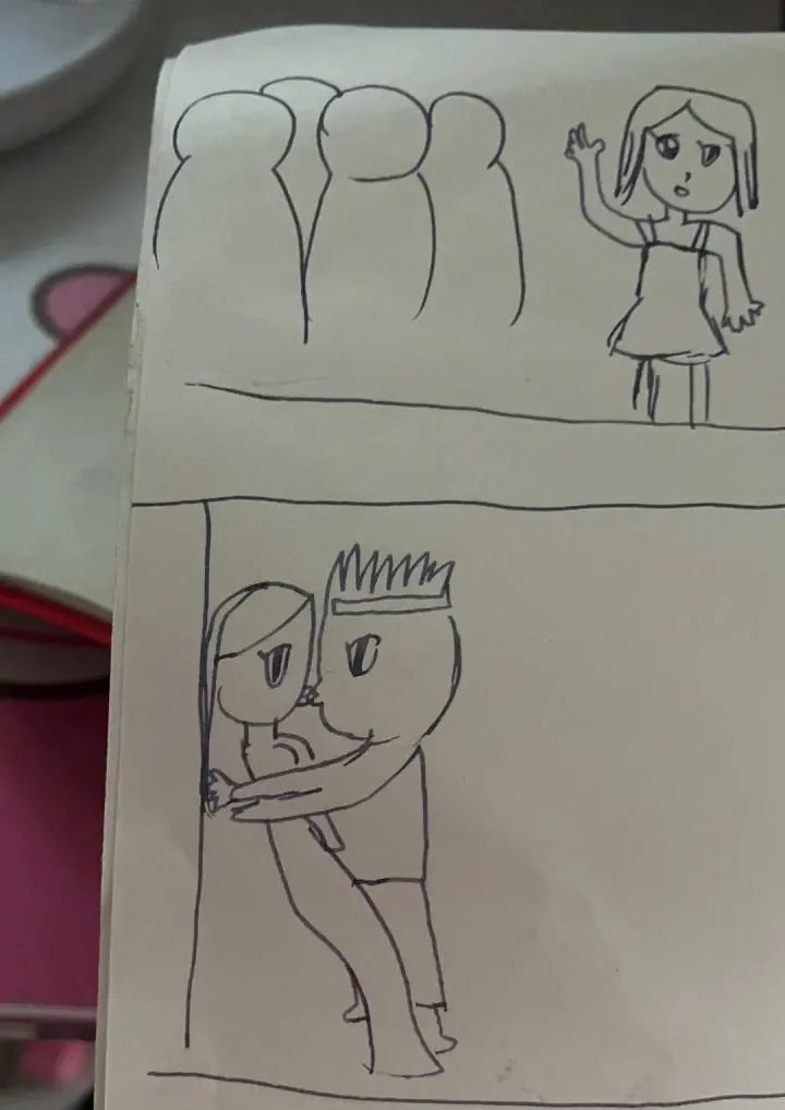 网上的妈妈是个例吗?我们也找了杭州一些小学老师问了问。“这种画肯定有,不仅画,还偷偷地写,我女儿就写过,言情小说,也不知道后来有没有结局,”有小学班主任说,看到小朋友画或者写这种,老师一般不会特地去拍下来,“怕他们难为情,一般看过也当没看过。”这位老师说,到了小学五六年级,有些小朋友已经开始发育了,会有一点性意识,会画这种也挺正常,“倒不一定是早恋,就是一种萌动。”