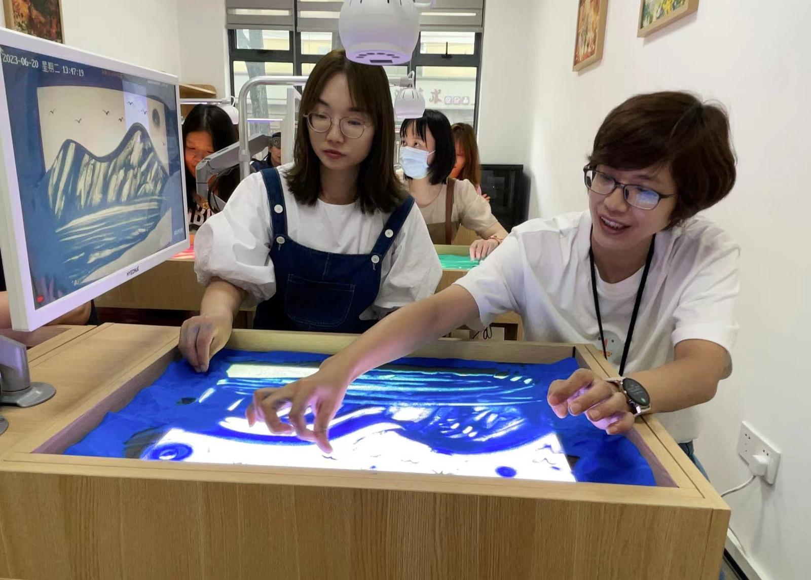 心语沙画活动便是区教育工会女工委联合区教育局妇工委组织的首场心理健康促进活动。在区家庭教育研究与指导服务中心的指导下,来自基层学校的近60名女工会主席及女工干部体验了一场精彩的沙画制作活动,她们在把玩沙子中获得了身心疗愈。“教育的本质是心灵的教育,教师要学会自我关怀,定期为心灵添加能量,只有以心育心,才能与学生一起快乐健康发展,从而在教育这场漫长的修行中以心赋能,陶己铸人。”一位小学工会主席表示,沙画活动给她很多灵感,回校后将策划类似的心理舒缓活动,帮助更多老师减压。