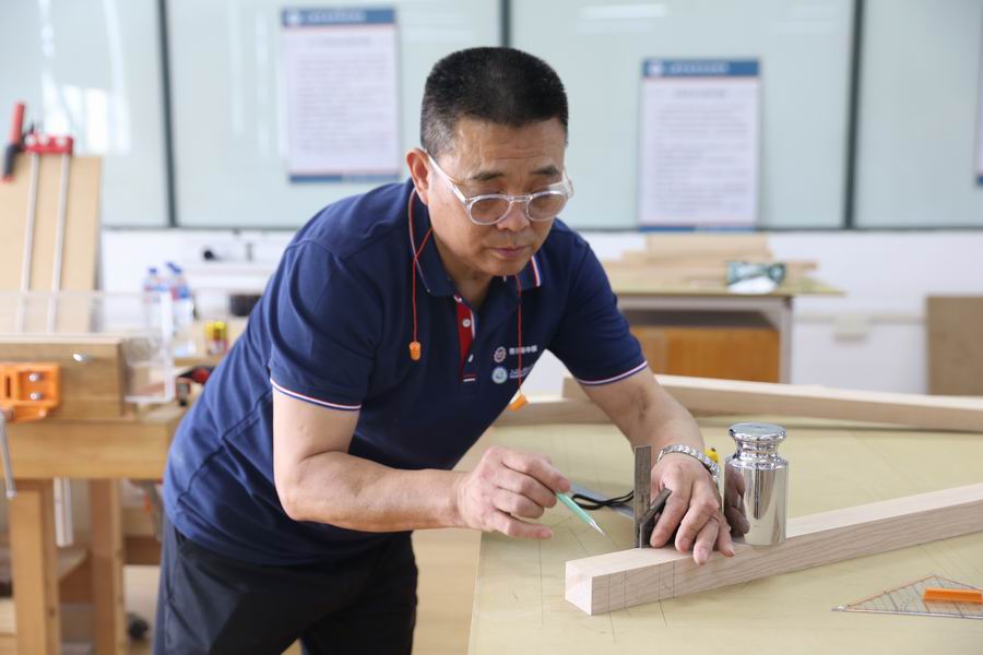蒋志发数十年来从事木工行业,技能精湛。2016年他受邀加入职业院校担纲“三木”教练工作。面对行业标准与世界技能大赛标准的差异,他刻苦学习世赛技术文件、钴研技术,设计了100多套精细木工日常训练用的赛题,创新10套技术路线方案,获得13项国家外观设计专利。他总是鼓励学生说,山再高,往上攀,总能登顶;路再长,走下去,定能到达。他以工匠品质,坚持科学训练,在第44、45、46届世界技能大赛中,担任精细木工项目教练组组长、中国世赛选拔赛裁判,指导选手摘金夺银。他因材施教为企业、技工院校培养了100多名技术人才,其中有20多名全国技术能手,帮助众多学生走上技能成才、技能报国之路。